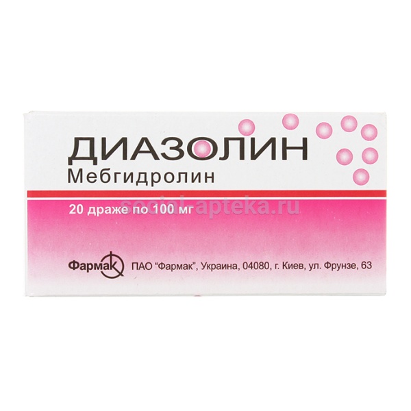Диазолин - блокатор гистаминовых H1-рецепторов. Оказывает противоалергическое, противозудное, антивоэксудативное, а также слабое седативное действие. Блокирует гистаминовые H1-рецепторы, понижает тонус гладкой мускулатуры (бронхи, ЖКТ, матка), уменьшает проницаемость капилляров и развитие отека, предупреждает возникновение зуда.