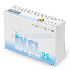 Иксел - антидепрессант, селективный ингибитор обратного захвата моноаминов (норадреналина и серотонина). Иксел не связывается с м-холинорецепторами, α1-адренорецепторами, гистаминовым Н1-рецепторами, а также с допаминовыми D1- и D2-рецепторам, бензодиазепиновым и опиоидным рецепторам.Не обладает седативным эффектом, при этом физиологически улучшает сон и не оказывает негативного влияния на познавательную функцию. Иксел также не оказывает влияния на проводящую систему сердца и АД, что особенно важно для пациентов пожилого возраста, постоянно принимающих кардиотропные препараты.ФармакокинетикаВсасываниеПосле приема препарата внутрь милнаципран хорошо абсорбируется из ЖКТ. Биодоступность составляет около 85% и не зависит от характера и режима питания. Сmax в плазме крови достигается приблизительно через 2 ч после приема.РаспределениеРавновесное состояние достигается через 2-3 дня регулярного приема. Связывание с белками плазмы составляет около 13% и не сопровождается насыщением.МетаболизмБиотрансформируется, главным образом, путем конъюгации с глюкуроновой кислотой. Метаболиты не обладают фармакологической активностью.ВыведениеT1/2 составляет 8 ч. Выводится преимущественно почками - около 90%. Полностью выводится из организма в течение 2-3 дней.