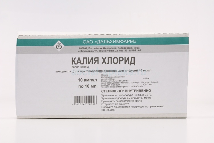 Для внутривенного капельного введения можно готовить раствор из расчета до 2,5 г калия хлорида в 500 мл изотонического 0,9% раствора натрия хлорида или 5% раствора декстрозы (глюкозы).