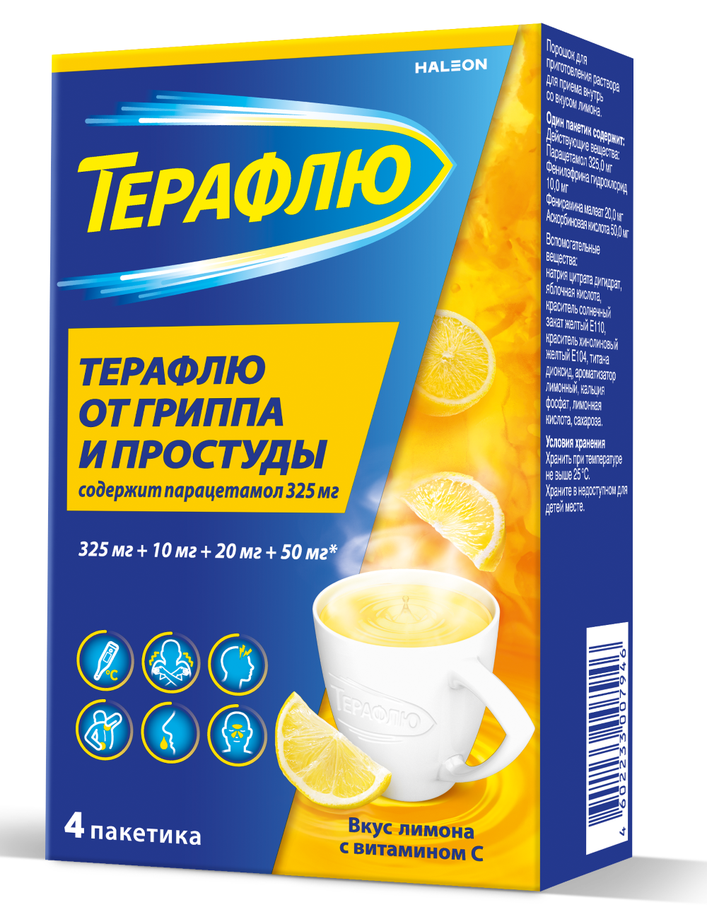 - Форма выпуска: ТераФлю лимон. Порошк для приготовления орального раствора.