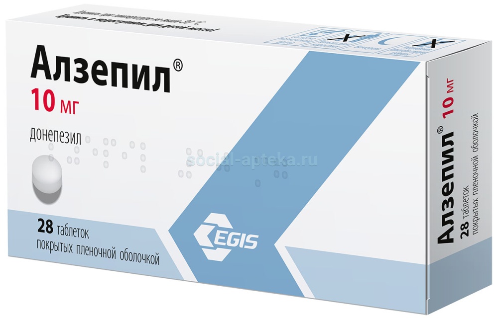 Селективный обратимый ингибитор ацетилхолинэстеразы, которая является основным преобладающим типом холинэстеразы в головном мозге. Донепезил ингибирует этот фермент более чем в 1000 раз сильнее, чем бутирилхолинэстеразу - фермент, который находится в основном вне пределов ЦНС. Однократный прием 5 мг или 10 мг в равновесном состоянии сопровождается угнетением активности холинэстеразы (оценивается в оболочках эритроцитов) на 63.6% и 77.3% соответственно. Алзепил замедляет прогрессирование болезни Альцгеймера, уменьшает выраженность когнитивных симптомов, в ряде случаев восстанавливает дневную активность больных и облегчает уход за ними. Корректирует поведенческие нарушения, уменьшает апатию, галлюцинации и неосмысленные повторяющиеся движения.