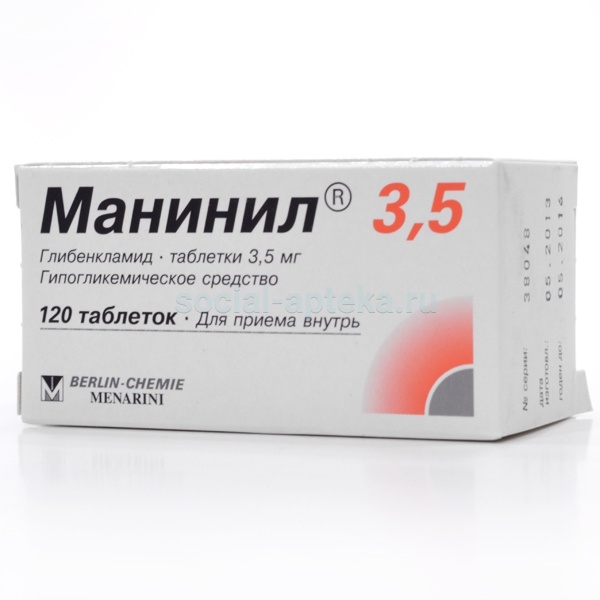Антагонисты Н2-рецепторов могут с одной стороны ослаблять, а с другой - усиливать гипогликемическое действие препарата Манинил® 3,5. Пентамидин в единичных случаях может вызывать сильное снижение или повышение концентрации глюкозы в крови. Может усиливаться или ослабевать действие производных кумарина.