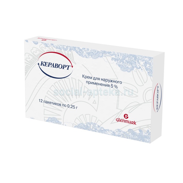 Наружно. Кераворт крем следует применять перед сном. Перед применением крема необходимо вымыть пораженные участки кожи с мылом и дать им высохнуть. Крем наносят на пораженные участки и аккуратно втирают в кожу. Крем должен оставаться на коже в течение 6-10 часов. Следует избегать попадания воды на пораженную область, необходимо отложить прием душа и другие водные процедуры на 8 часов. По истечении указанного времени крем должен быть смыт теплой водой с мылом. Крема из одного пакетика хватает для нанесения на участок кожи в 20 см2. Нельзя повторно использовать крем из вскрытого ранее пакетика! До и после нанесения крема необходимо вымыть руки теплой водой с мылом. При лечении генитальных/перианальных бородавок крем должен использоваться после полового акта.Генитальные и перианальные бородавки (остроконечные кондиломы) у взрослых.Крем Кераворт необходимо наносить трижды в неделю (например, в понедельник, среду и пятницу или во вторник, четверг и субботу) перед сном и оставлять на коже в течение 6-10 часов. Крем наносится тонким слоем и втирается в чистую поверхность пораженных кондиломами участков до полного впитывания.Ограниченная поверхностная базальноклеточная карцинома у взрослых.Наносят крем Кераворт подряд 5 дней в неделю в течение 6 недель (например, с понедельника по пятницу) перед сном и оставляют на коже, приблизительно на 8 часов.Реакцию обработанной опухоли на крем необходимо оценить через 12 недель после окончания лечения. Если обработанная опухоль не имеет достаточной реакции, необходимо применить другое лечение.Если местная кожная реакция на крем причиняет повышенный дискомфорт пациенту или если происходит инфицирование обрабатываемой поверхности, необходимо прервать лечение на несколько дней.Актинический кератоз у взрослых.Лечение назначается и контролируется врачом. Крем Кераворт необходимо наносить 3 раза в неделю (например, в понедельник, среду и пятницу или во вторник, четверг и субботу) перед сном в течение 4 недель и оставлять на коже на 8 часов. Достаточное количество крема наносится на всю пораженную поверхность. Через 4 недели после прекращения лечения необходимо оценить наличие актинического кератоза. Если какие-либо проявления остаются, лечение необходимо продолжить еще на четыре недели. Максимальная рекомендованная доза – один пакетик. Максимальное рекомендованное лечение – 8 недель.Если наблюдается местная острая воспалительная реакция или если происходит инфицирование обработанной поверхности, лечение необходимо приостановить. В последнем случае необходимо предпринять соответствующие меры. Каждый период лечения не должен превышать 4 недель из-за пропущенных доз или периодов отдыха.Если поражения не имеют достаточной реакции на лечение при последующем осмотре через 4-8 недель после второго периода лечения, необходимо применить другое лечение.Если доза пропущена, пациент должен нанести крем, как только он вспомнит об этом, затем необходимо продолжить лечение по обычному графику. Однако следует помнить о том, что крем можно наносить не более одного раза в сутки.