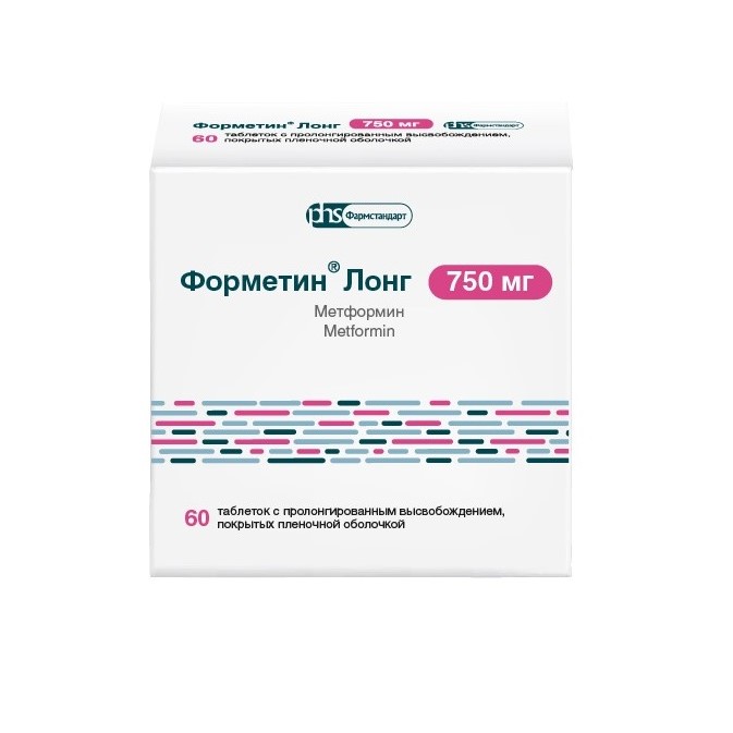 Препарат Форметин® Лонг, таблетки с пролонгированным высвобождением, покрытые пленочной оболочкой, 500 мг, 750 мг, 850 мг, 1000 мг принимают внутрь. Таблетки проглатывают целиком, не разжевывая, запивая небольшим количеством жидкости, один раз в день во время ужина. Доза препарата подбирается врачом индивидуально для каждого пациента на основании результатов измерения концентрации глюкозы в крови. Монотерапия и комбинированная терапия в сочетании с другими гипогликемическими средствами - для пациентов, не принимающих метформин, рекомендуемой начальной дозой препарата Форметин® Лонг, таблетки с пролонгированным высвобождением, покрытые пленочной оболочкой, является 500 мг, 750 мг или 850 мг один раз в сутки во время ужина. Через каждые 10-15 дней рекомендуется корректировать дозу, в зависимости от концентрации глюкозы в плазме крови. Медленное увеличение дозы способствует снижению побочных эффектов со стороны желудочно-кишечного тракта; - для пациентов, уже получающих лечение метформином, начальная доза препарата Форметин® Лонг должна быть эквивалентна суточной дозе таблеток с обычным высвобождением; - пациентам, принимающим метформин в форме таблеток с обычным высвобождением активного ингредиента в дозе, превышающей 2000 мг, не рекомендован переход на Форметин® Лонг; - в случае планирования перехода с другого гипогликемического средства подбор дозы осуществляют, как описано выше, начиная с назначения препарата Форметин® Лонг в дозе 500 мг, 750 мг или 850 мг, с возможным последующим переходом на препарат Форметин® Лонг 1000 мг. Комбинация с инсулином Для достижения лучшего контроля концентрации глюкозы в крови метформин и инсулин можно применять в виде комбинированной терапии. Обычная начальная доза препарата Форметин® Лонг составляет одну таблетку 500 мг, 750 мг или 850 мг один раз в сутки во время ужина, в то время как дозу инсулина подбирают на основании результатов измерения концентрации глюкозы в крови. Далее возможен переход на Форметин® Лонг 1000 мг. Суточная доза Максимальная рекомендованная доза препарата Форметшг Лонг, таблетки с пролонгированным высвобождением, покрытые пленочной оболочкой, 500 мг и 1000 мг составляет, соответственно, 4 таблетки по 500 мг (2000 мг) или 2 таблетки по 1000 мг (2000 мг) в сутки. Если при приеме максимальной рекомендованной дозы препарата Форметин® Лонг 500 мг или 1000 мг один раз в день не удается достичь адекватного контроля гликемии, максимальная доза может быть разделена на два приема: 2 таблетки 500 мг - во время завтрака и 2 таблетки 500 мг - во время ужина, либо одна таблетка 1000 мг - во время завтрака и одна таблетка 1000 мг во время ужина. Рекомендованная доза препарата Форметин® Лонг, таблетки пролонгированного действия, покрытые пленочной оболочкой, 750 мг и 850 мг составляет, соответственно, 2 таблетки по 750 мг (1500 мг) или 2 таблетки по 850 мг (1700 мг) один раз в сутки. Если при приеме рекомендованной дозы препарата Форметин® Лонг 750 мг или 850 мг не удается достичь адекватного контроля гликемии, возможно увеличение дозы до максимальной - соответственно, 3 таблетки но 750 мг (2250 мг) или 3 таблетки по 850 мг (2550 мг) препарата Форметин® Лонг один раз в день. Для уменьшения побочных эффектов со стороны желудочно-кишечного тракта суточную дозу препарата Форметин® Лонг 750 мг или 850 мг допустимо разделить на 2 приема. Если адекватный контроль г