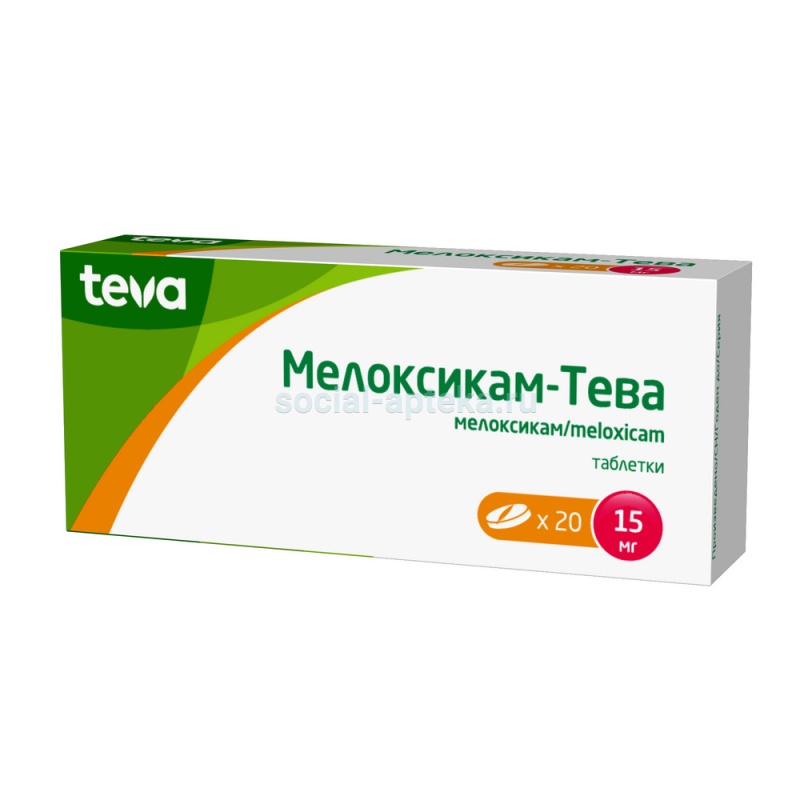 Мелоксикам-Тева - НПВП, обладает противовоспалительным, жаропонижающим, анальгетическим действием. Относится к классу оксикамов; производное энолиевой кислоты. Механизм действия - ингибирование синтеза Pg в результате избирательного подавления ферментативной активности ЦОГ2. При назначении в высоких дозах, длительном применении и индивидуальных особенностях организма ЦОГ2 селективность снижается. Подавляет синтез Pg в области воспаления в большей степени, чем в слизистой оболочке желудка или почках, что связано с относительно избирательным ингибированием ЦОГ2. Реже вызывает эрозивно-язвенные заболевания ЖКТ. Фармакокинетика: Абсорбция из ЖКТ после приема внутрь или ректального введения - 89%; таблетки и суппозитории биоэквивалентны. Прием пищи не влияет на абсорбцию. Концентрация в плазме дозозависима. TCmax - 5- 6 ч. Css создается через 3-5 дней. Связь с белками плазмы - 99%. Проходит через гистогематические барьеры, проникает в синовиальную жидкость. Концентрация в синовиальной жидкости - 50% от концентрации в плазме. Метаболизм в печени - до неактивных метаболитов. Выводится через кишечник и почками (примерно в равной пропорции), в неизмененном виде - 5% суточной дозы (через кишечник). T1/2 - 20 ч. Плазменный клиренс - в среднем 8 мл/мин (снижается в пожилом возрасте).