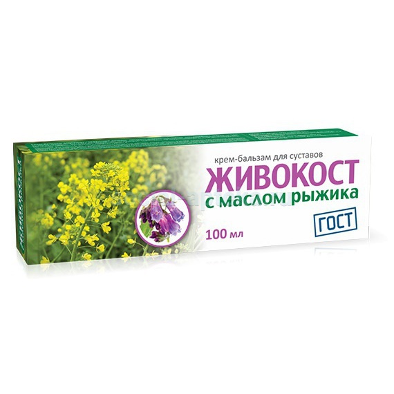 На сегодняшний день живокост лекарственный — один из наиболее популярных в народных рецептах. Он содержит в себе множество компонентов: аллантоин, органические кислоты, витамин В12 и эфирные масла, которые способствуют регенерации и питанию клеток. Масло семян рыжика содержит рекордное количество витамина Е, А, D, К, каротин, хлорофилл и основные микроэлементы, которые питают и витаминизируют. Живокост стимулирует восстановление поврежденных тканей, снимает отечность и мышечный спазм, ускоряет процессы восстановления при переломах, растяжениях и ушибах. Масло семян рыжика содержит рекордное количество витаминов Е, А, D, К, каротин, хлорофилл и основные внутриклеточные микроэлементы, способствующие повышению энергетического потенциала биоактивных точек тела, снижает ощущение дискомфорта. Осуществляет питательную поддержку соединительной ткани. Крем-бальзам содержит следующие активы: экстракт живокоста, масло ши, камфору, масло семян рыжика, ментол, экстракт девясила, экстракт лопуха, экстракт зверобоя, экстракт подорожника, экстракт календулы, аллантоин, хондроитина сульфат, глюкозамина гидрохлорид, масло можжевельника, масло эвкалипта, масло кедра, витамин Е.