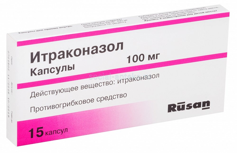 Лекарственные средства, оказывающие влияние на абсорбцию итраконазола. Лекарственные средства, уменьшающие кислотность желудочного сока, снижают абсорбцию итраконазола, что связано с растворимостью оболочек капсул. Лекарственные средства, оказывающие влияние на метаболизм итраконазола. Итраконазол в основном расщепляется ферментом CYP3A4. Было изучено взаимодействие итраконазола с рифампицином, рифабутином и фенитоином, являющимися мощными индукторами фермента CYP3A4. Исследованием было установлено, что в этих случаях биодоступность итраконазола и гидрокси-итраконазола значительно снижается, что приводит к существенному уменьшению эффективности препарата. Одновременное применение итраконазола с данными препаратами, являющимися потенциальными индукторами печеночных ферментов, не рекомендуется. Исследования взаимодействия с другими индукторами печеночных ферментов, такими как карбамазепин, фенобарбитал и изониазид, не проводились, однако аналогичные результаты можно предположить. Сильные ингибиторы фермента CYP3A4, такие как ритонавир, индинавир, кларитромицин и эритромицин, могут увеличивать биодоступность итраконазола. Влияние итраконазола на метаболизм других лекарственных средств. Итраконазол может ингибировать метаболизм препаратов, расщепляемых ферментом CYP3A4. Результатом этого может быть усиление или пролонгирование их действия, в том числе и побочных эффектов. Перед началом приема сопутствующих лекарственных препаратов, необходимо проконсультироваться с лечащим врачом по поводу путей метаболизма данного препарата, указанных в инструкции по медицинскому применению. После прекращения лечения концентрации итраконазола в плазме снижаются постепенно в зависимости от дозы и длительности лечения. Это необходимо принимать во внимание при обсуждении ингибирующего эффекта итраконазола на сопутствующие лекарственные средства. Примерами таких лекарств являются. Препараты, которые нельзя назначать одновременно с итраконазолом: терфенадин, астемизол, мизоластин, цизаприд, дофетилид, хинидин, пимозид, левометадон, сертиндол - совместное применение данных лекарственных средств с итраконазолом может вызывать повышение уровня этих веществ в плазме и увеличивать риск удлинения интервала QT и в редких случаях - возникновение мерцательной аритмии желудочков (torsade de pointes); расщепляемые ферментом CYP3А4 ингибиторы редуктазы ГМГ- КоА, такие как симвастатин и ловастатин; мидазолам для приема внутрь и триазолам; алкалоиды спорыньи такие как дигидроэрготамин, эргометрин, эрготамин и метилэргометрин; блокаторы кальциевых каналов - в дополнение к возможному фармакокинетическому взаимодействию, связанному с общим путем метаболизма с участием фермента CYP3A4, блокаторы кальциевых каналов могут оказывать отрицательный инотропный эффект, который усиливается при одновременном приеме с итраконазолом. Препараты, при назначении которых необходимо следить за их концентрациями в плазме, действием, побочными эффектами. В случае одновременного назначения с итраконазолом дозу этих препаратов, если необходимо, следует уменьшать; пероральные антикоагулянты; ингибиторы ВИЧ-протеазы, такие как ритонавир, индинавир, саквинавир; некоторые противоопухолевые препараты, такие как алкалоиды барвинка розового, бусульфан, доцет