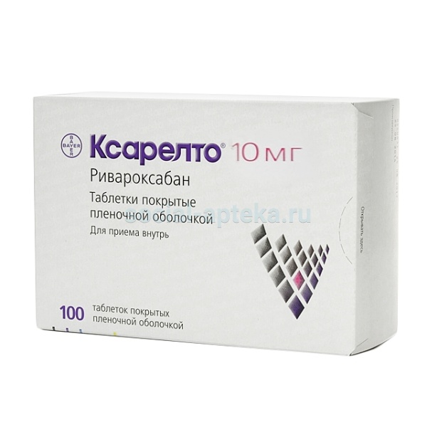Для профилактики ВТЭ при больших ортопедических операцияхПредназначен для приема внутрь по 10 мг 1 раз/сут. Длительность лечения определяется типом ортопедического вмешательства.Продолжительность лечения: 5 недель после большой операции на тазобедренном суставе; 2 недели после большой операции на коленном суставе.Ривароксабан можно принимать независимо от приема пищи.Начальную дозу следует принять через 6-10 ч после операции при условии достигнутого гемостаза.В случае пропуска дозы пациенту следует принять ривароксабан немедленно и на следующий день продолжить лечение по 1 таблетки/сут, как и ранее.Перевод пациентов с антагонистов витамина К (АВК) на КсарелтоПри MHO ≤ 3 лечение АВК следует прекратить и начать лечение Ксарелто. При переводе пациентов с АВК на Ксарелто, после приема Ксарелто значения MHO будут ложно повышаться. В связи с этим показатель MHO нельзя использовать для контроля антикоагулянтного эффекта Ксарелто.Переход с Ксарелто на антагонисты витамина К (АВК)Существует вероятность недостаточного антикоагулянтного эффекта при переводе пациентов с Ксарелто на АВК. В переходный период, связанный с переводом на другой противосвертывающий препарат, необходимо обеспечить непрерывный и достаточный антикоагулянтный эффект. Следует иметь в виду, что Ксарелто может способствовать повышению показателя MHO.При переводе пациента с Ксарелто на АВК оба препарата следует давать одновременно до тех пор, пока MHO не достигнет значения ≥ 2. В первые два дня переходного периода следует использовать стандартную дозу АВК, а впоследствии руководствоваться значением MHO. В период совместного приема Ксарелто и АВК MHO следует определять не ранее, чем через 24 ч (после предыдущей, но до приема следующей дозы Ксарелто). После отмены Ксарелто определение MHO с достаточной степенью надежности возможно через 24 ч после приема последней дозы препарата.Переход с парентеральных антикоагулянтов па КсарелтоПри переводе пациента с парентеральных антикоагулянтов на Ксарелто, прием Ксарелто следует начинать за 0-2 ч до предполагаемого введения следующей дозы парентерального препарата (например, низкомолекулярного гепарина ) или во время отмены длительно применяемого парентерального препарата (например, в/в введения нефракционированного гепарина).Переход с Ксарелто на парентеральные антикоагулянтыСледует прекратить прием Ксарелто и ввести первую дозу парентерального антикоагулянта в тот момент, когда нужно было принять следующую дозу Ксарелто.Применение у отдельных группы пациентов Коррекция дозы в зависимости от возраста больного (старше 65 лет), пола, массы тела или этнической принадлежности не требуется.При заболевании печениРивароксабан противопоказан пациентам с заболеваниями печени, сопровождающимися коагулопатией, которая обуславливает клинически значимый риск кровотечения. Больным с другими заболеваниями печени изменения дозы не требуются. Имеющиеся ограниченные клинические данные, полученные у пациентов со среднетяжелой печеночной недостаточностью (класс В по шкале Чайлд-Пью), указывают на значимое усиление фармакологической активности препарата. Для пациентов с тяжелой печеночной недостаточностью (класс С по шкале Чайлд-Пью) клинические данные отсутствуют.При назначении ривароксабана больным с почечной недостато
