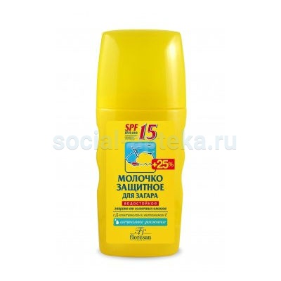 ФЛОРЕСАН МОЛОЧКО ЗАЩИТ Д/ЗАГАРА SPF 15 ВОДОСТ 170МЛ Ф-104f Универсальное средство для защиты от солнечных лучей и получения красивого, ровного загара. Комплекс UVA/UVB фильтров и Д-пантенол обеспечивают надежную защиту от ожогов и покраснения кожи во время пребывания на солнце. Витамин Е тонизирует кожу, восстанавливает ее упругость и эластичность, препятствует обезвоживанию эпидермиса. Интенсивное увлажнение.