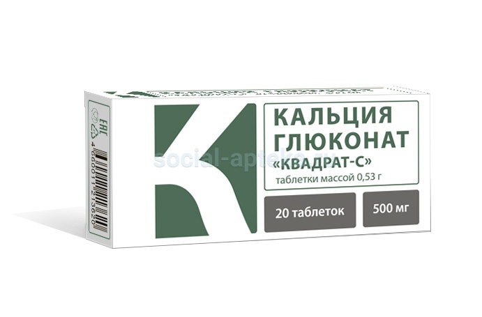 Кальция глюконат - 0,5г; Вспомог. в-ва: крахмал картофельный,кальция стеарат, тальк