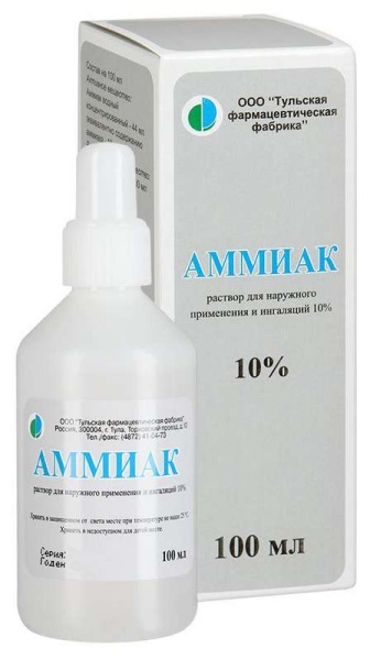 1 мл раствора для наружного применения содержит: действующее вещество: аммиакa раствор концентрированный - 0,44 мл, вспомогательное вещество: водa очищенная.
