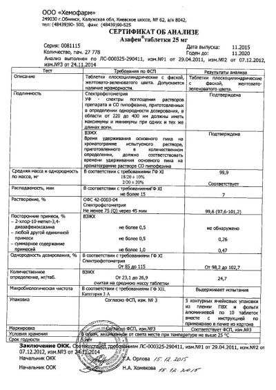 После перевода с терапии ингибиторами МАО на Азафен необходим интервал в 2 недели.Необходим периодический контроль функций печени и почек.В период лечения запрещено употребление алкоголя.Влияние на способность к вождению автотранспорта и управлению механизмамиВ период лечения пациентам следует воздерживаться от занятий потенциально опасными видами деятельности, требующими повышенного внимания и быстроты психомоторных реакций, например, управления транспортными средствами.