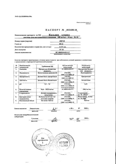 Препарат вводят внутривенно струйно или капельно (медленно) со скоростью не более 0,75-1,5 мл/мин. Ампулу с раствором перед введением подогревают до температуры тела. После завершения введения пациенту следует непродолжительное время оставаться в положении "лежа". Для внутривенного капельного введения раствор препарата предварительно разводят в 100-200 мл 0,9% изотонического раствора натрия хлорида или 5% раствора декстрозы (глюкозы). При аллергических реакциях (крапивница, ангионевротический отек, аллергодерматозы, сывороточная болезнь), свинцовой колике, передозировке солями магния - 7,5-15 мл. При острой гипокальциемии - 7,5-15 мл в течение 1-3 дней, при необходимости введение повторяют каждые 1-3 дня. При гипокальциемической тетании - 5-17,5 мл. Введение повторяют каждые 8 ч до достижения терапевтического эффекта. При гиперкалиемии (под контролем электрокардиограммы) - 2,45-15 мл, при необходимости повторную дозу вводят через 1-2 мин. Детям - по 0,3 мл/кг, максимальная суточная доза - 15 мл. При аллергических заболеваниях рекомендуется совместное применение кальция хлорида и противогистаминных препаратов.