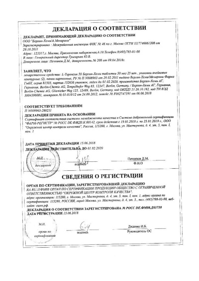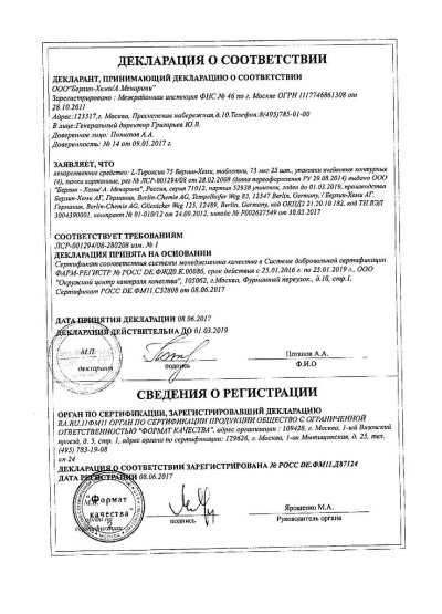 Сертификаты L-тироксин