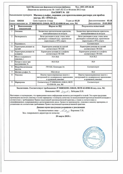 Магния сульфат гептагидрат - 25 г.