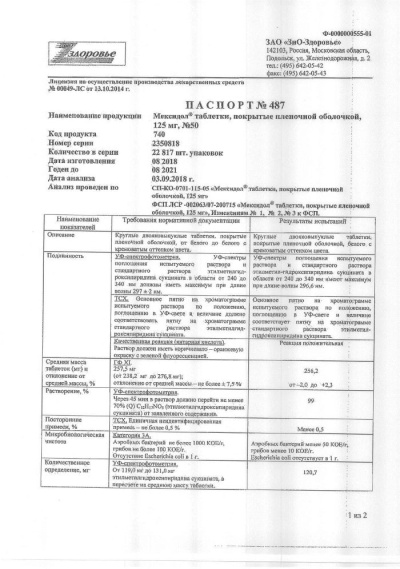Действующее вещество: этилметилгидроксипиридина сукцинат 50 г;