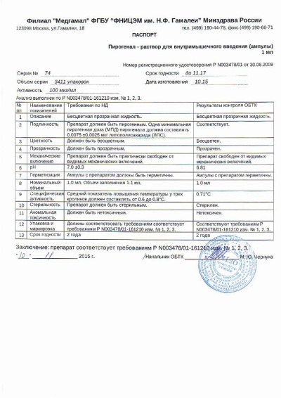 1 мл раствора для внутримышечного введения содержит:Активное вещество: липополисахарид 100 мкг.